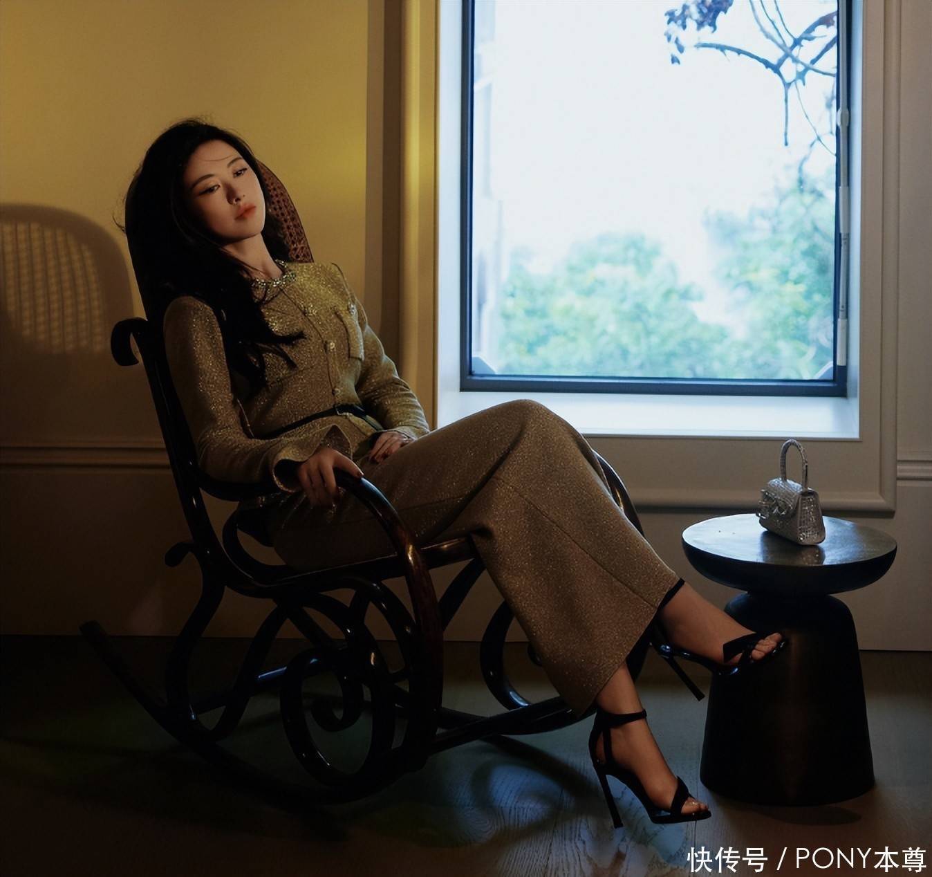 朱珠最近被采访时,身穿一件无领金棕色小香风短夹克,搭配同色系半身裙!脚踩黑色一字带高跟凉鞋,气质出众!